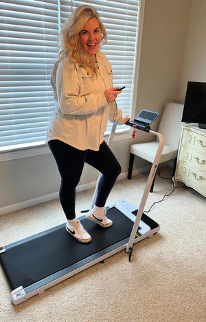 To avoid potential damage, we recommend our Foldable Treadmill Mat ($59.99 CAD) to prevent indentations on carpets and protect your floor. Ensures stability and safety while you work out, reducing the risk of slips and equipment movement.
